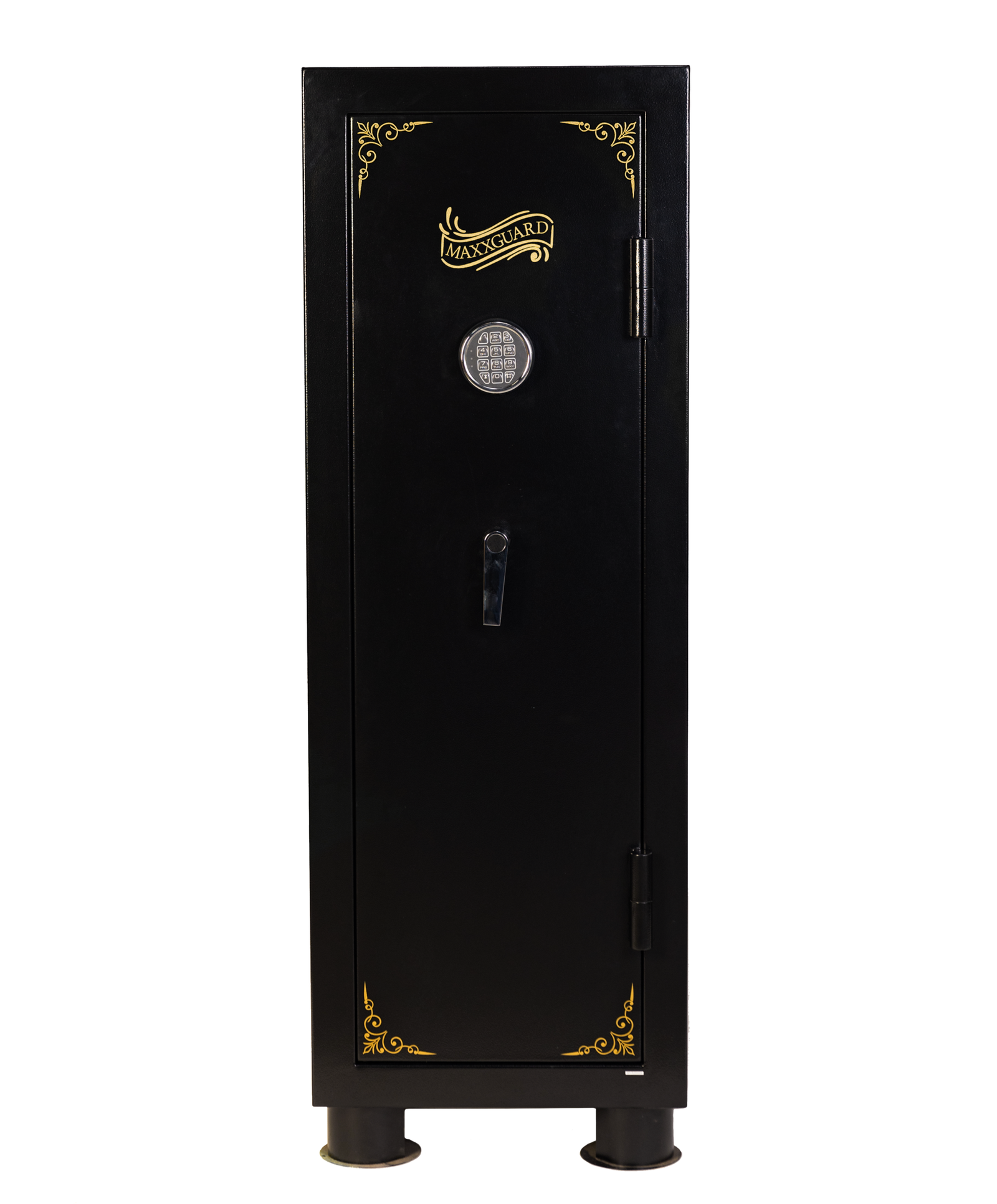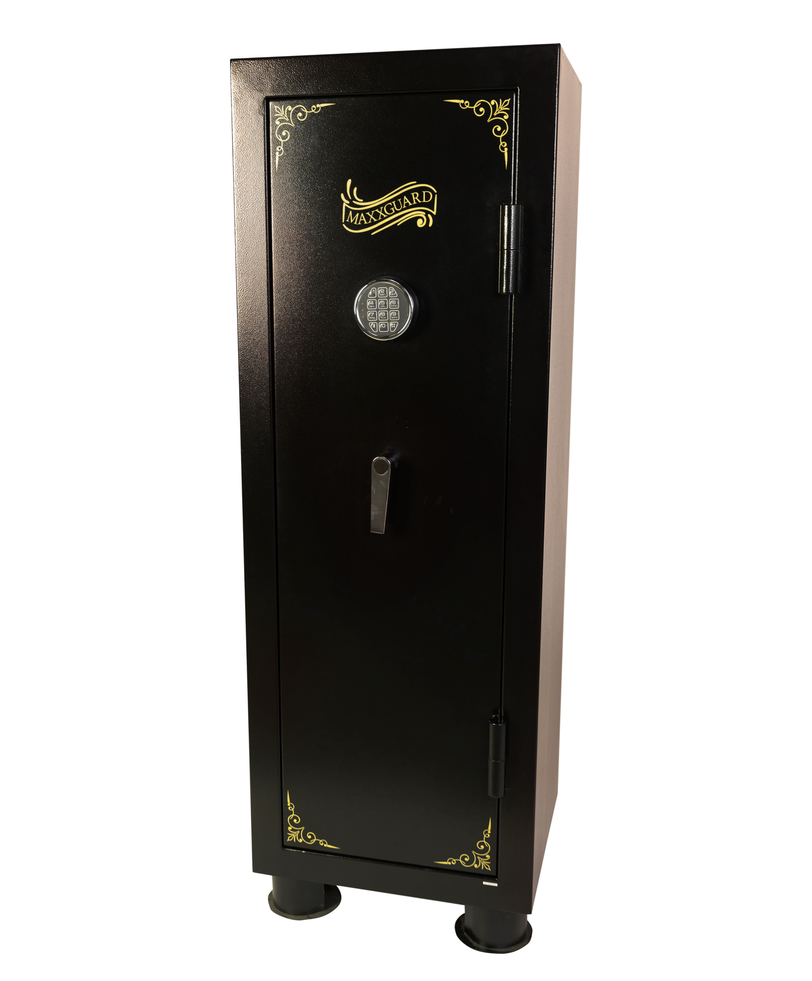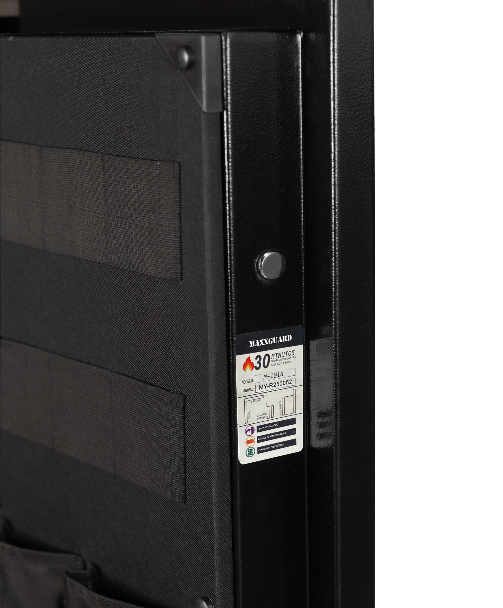El Armero Mediano MAXXGUARD Modelo M-1014 E es una versión revolucionaria diseñada para el tirador que prioriza la organización meticulosa de su equipo. Comparte la robustez exterior del M-1014 estándar (mismas dimensiones y peso de 82 kg en acero de 2 mm), pero redefine su interior para albergar hasta 4 armas largas acompañadas de un sistema completo de estantes tapizados laterales y superior.