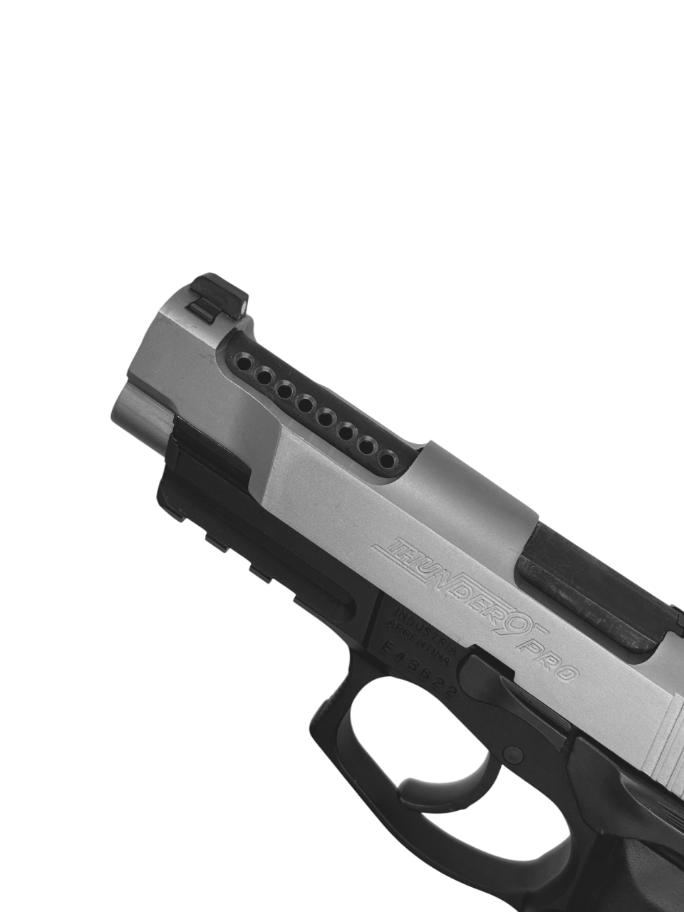 La Pistola Bersa Thunder 9 Pro Hibrycomp V16 Dos Tonos (edición Punto de Impacto S.A.) es una pistola semiautomática en 9 mm Parabellum concebida para tiradores exigentes que buscan capacidad, precisión y control en una plataforma profesional. Equipada con el sistema Hibrycomp V16 —dieciséis perforaciones de compensación de gases— ofrece una reducción notable del retroceso y del alce del cañón, facilitando recuperaciones más rápidas y agrupaciones más consistentes. Presentada en acabado Dos Tonos, combina estética táctica con resistencia al desgaste para uso intensivo.