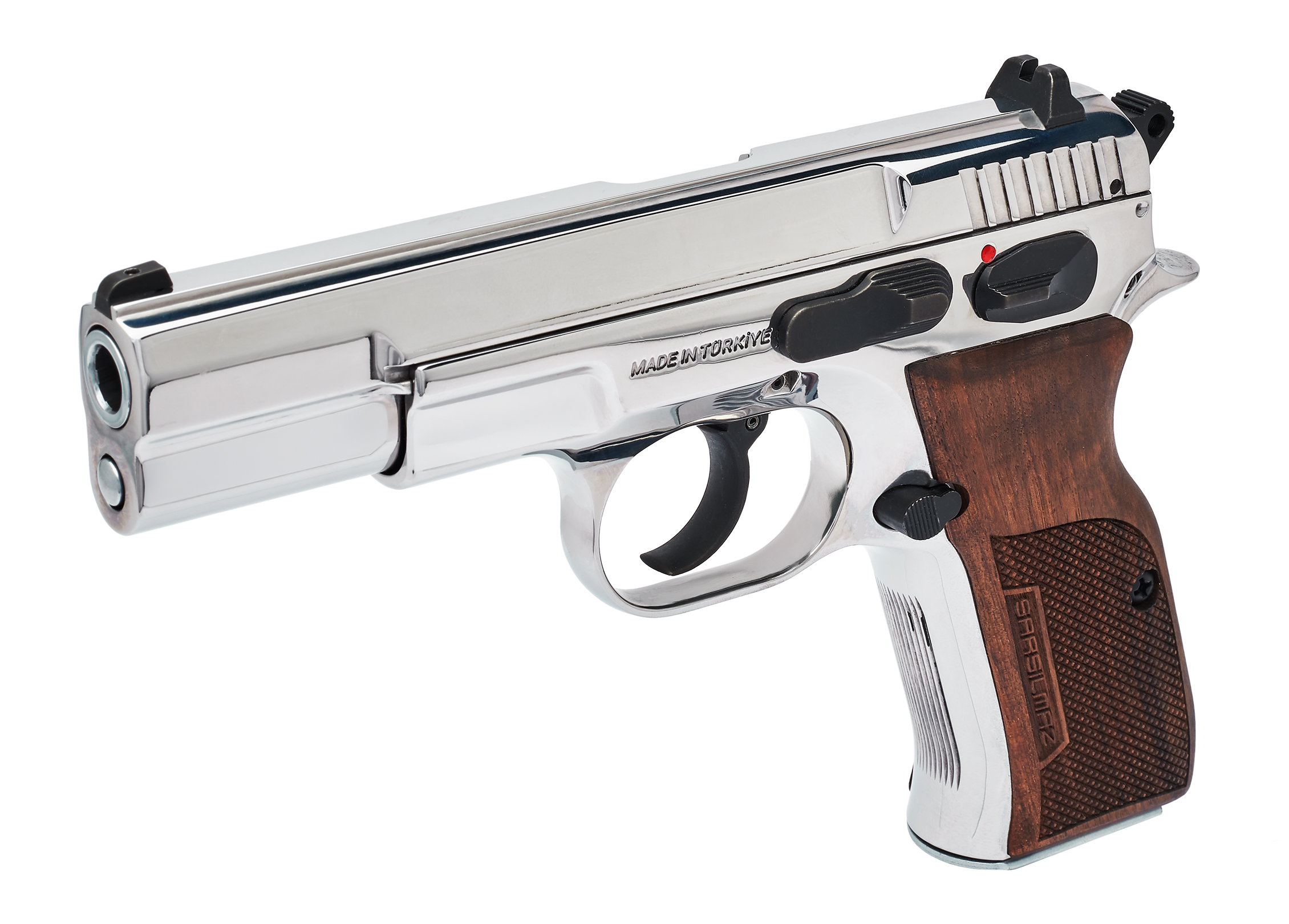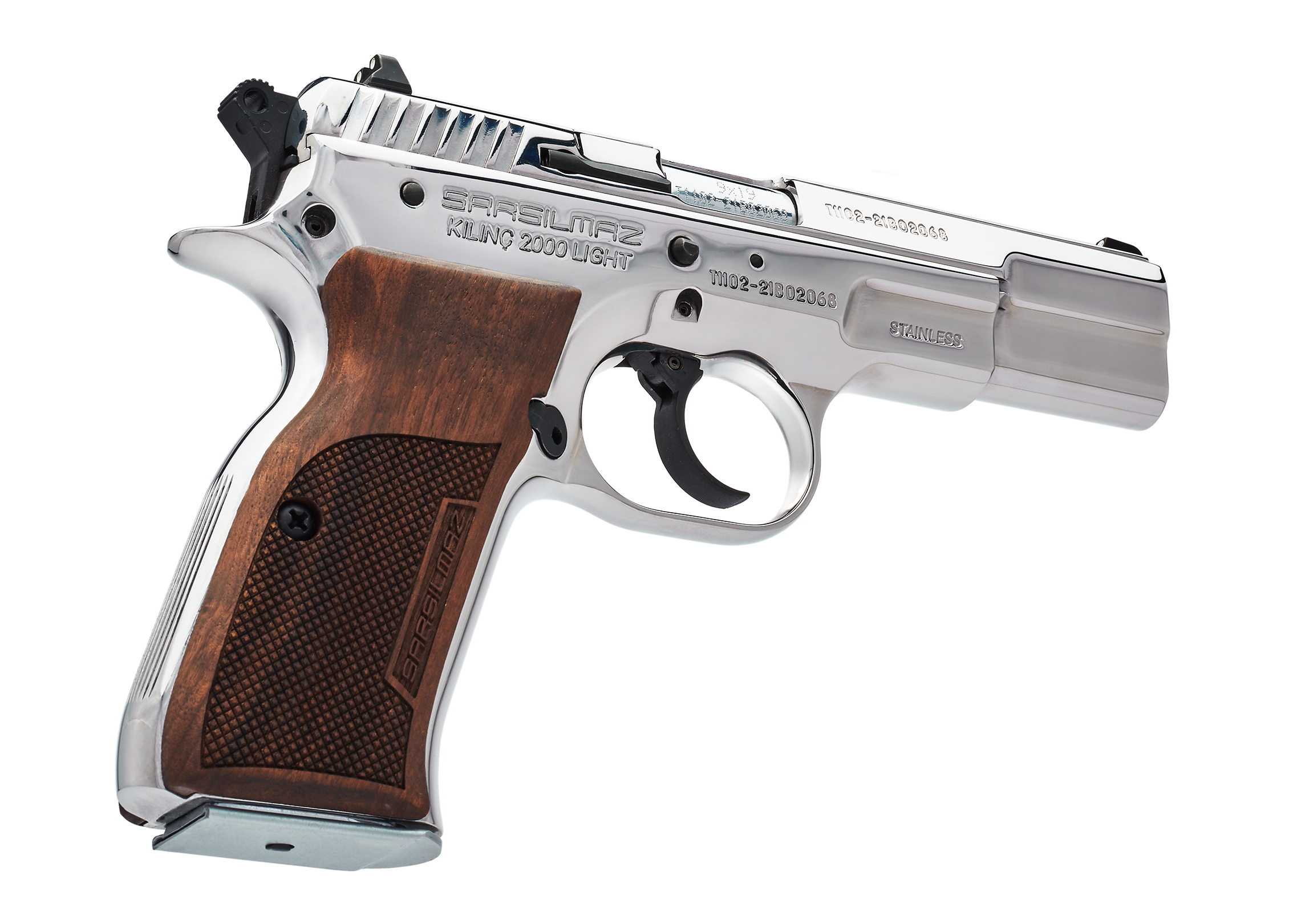 La Kilinc 2000 Light Stainless Polished es la versión más llamativa y resistente de la pistola oficial de las fuerzas policiales turcas. Con una terminación de acero inoxidable pulido a espejo, esta full size no solo mantiene la confiabilidad y precisión de su versión estándar, sino que suma una estética imponente y durabilidad extra ante la corrosión. Ideal para quienes buscan desempeño profesional con presencia destacada.