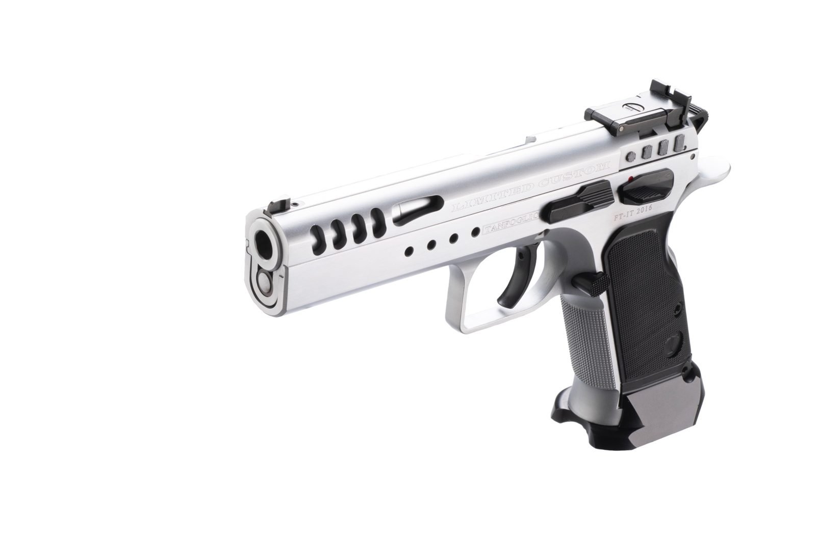 Diseñada para el alto rendimiento en IPSC Standard Division, la Tanfoglio Limited Custom es sinónimo de precisión, control y fiabilidad. Construida íntegramente en acero, con cañón cónico (bull) de 121 mm y disparo de simple acción (SA), ofrece una plataforma equilibrada, con alza micrométrica y magwell de fábrica para recargas veloces. Lista para competir desde el primer disparo.